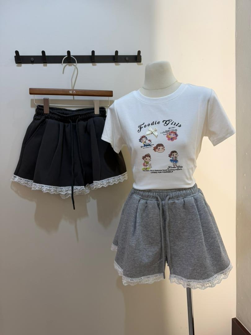 蕾丝边运动短裤 Lace Trim Sweat Shorts